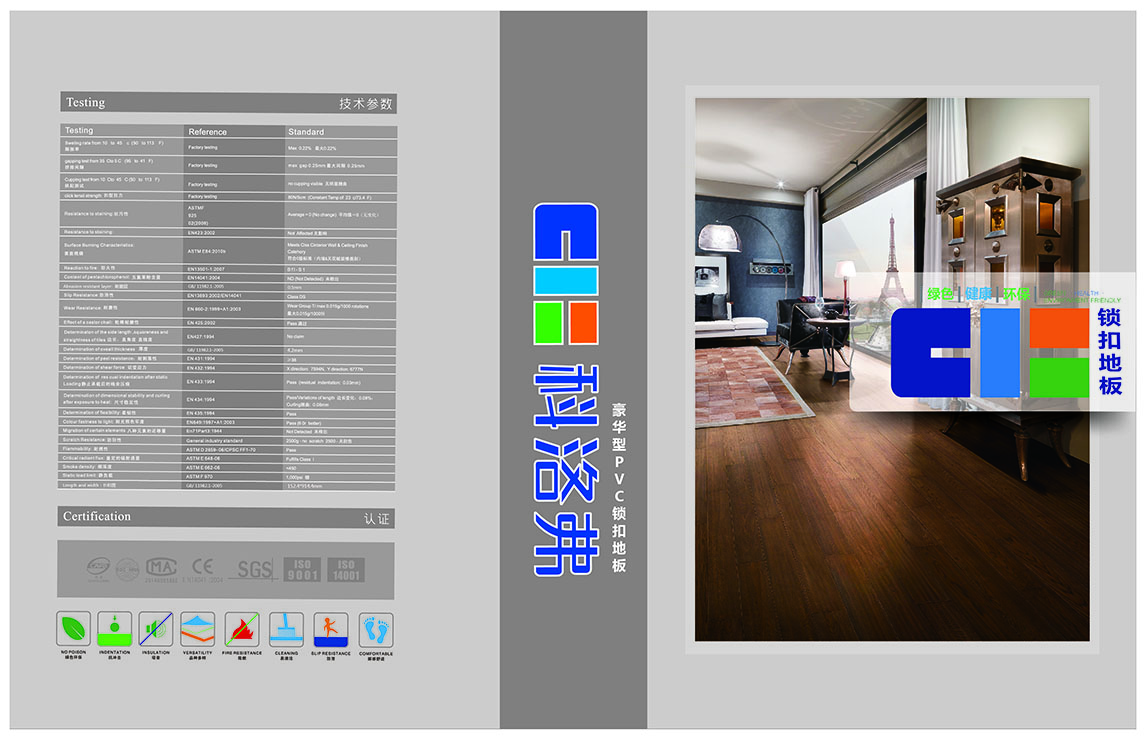 14、PVC地板更防火阻燃:PVC材料本身为防火阻燃材料,通过防火测试,离开火源即自动熄灭,生命安全有保障。