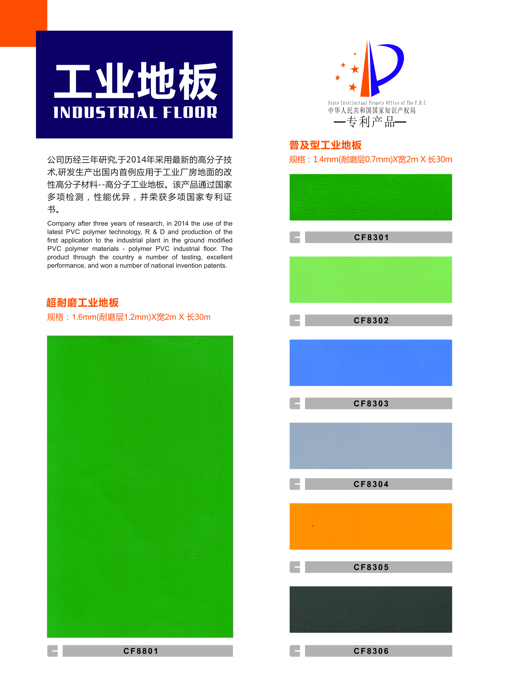 6 绿色环保:生产高分子工业地板主要原料不含放射性元素,是绿色环保的新型地面装饰材料。